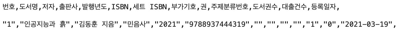 with open('남산도서관 장서 대출목록 (2021년 04월).csv', encoding='EUC-KR') as f: