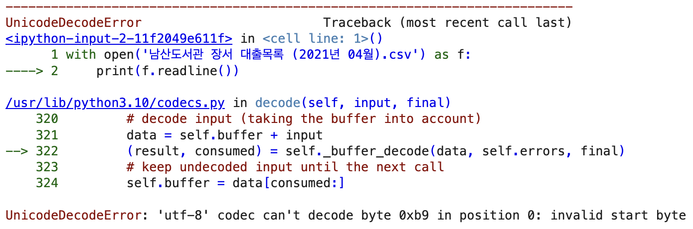 UnicodeDecodeError 발생: UTF-8 코덱이 어떤 바이트를 읽을 수 없음