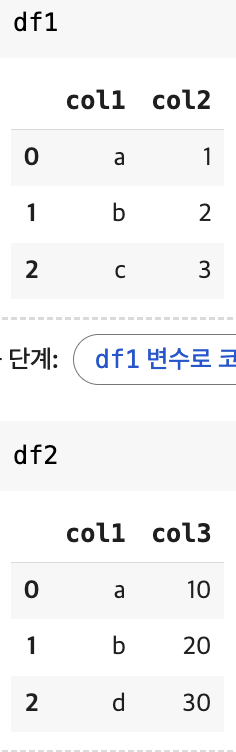 → left: 첫 번째 데이터프레임 기준으로 두 번째 데이터프레임 합침