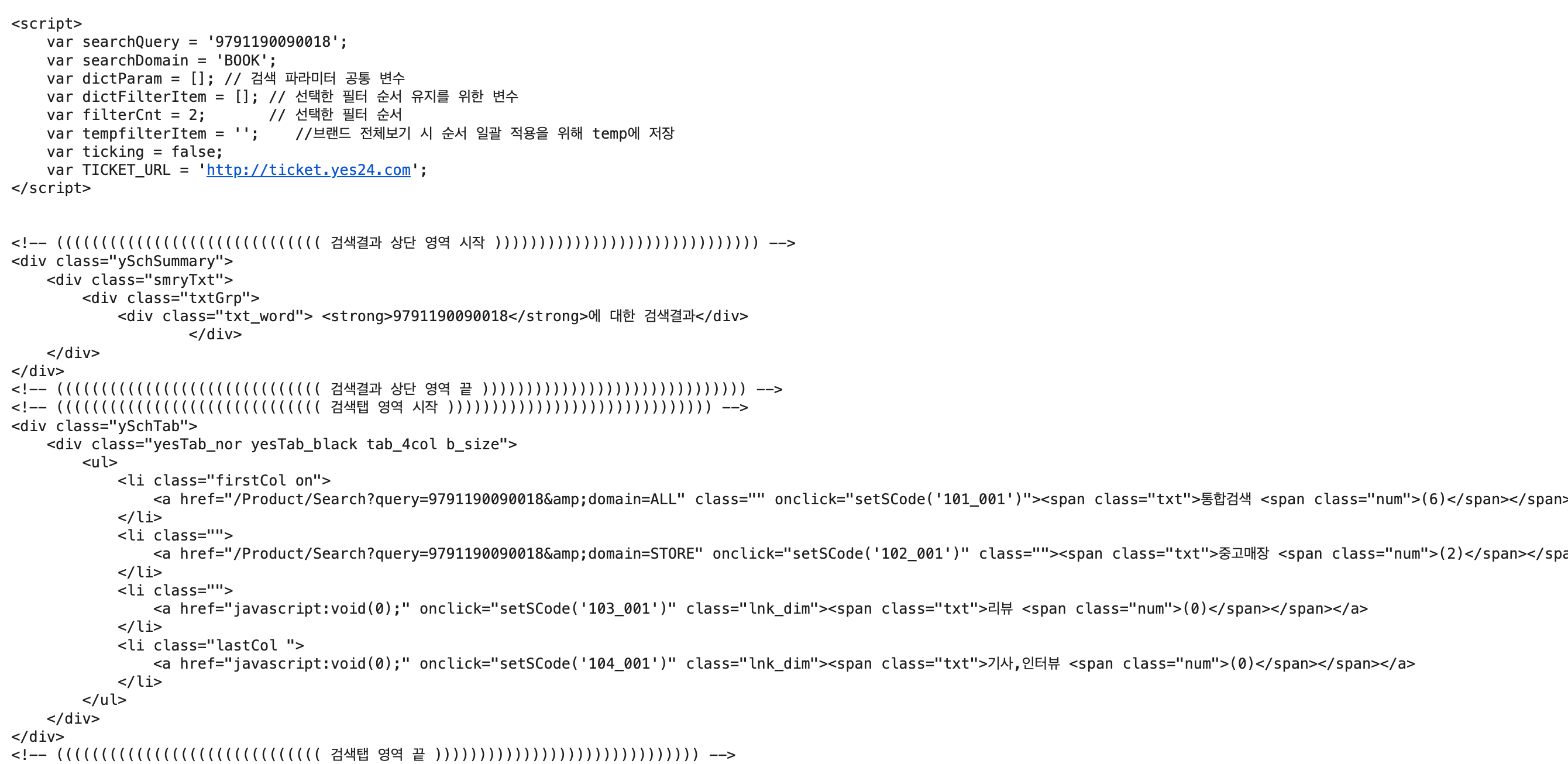 print(r.text) #requests.get() 함수가 반환한 응답 객체 사용해 도서 검색 결과 페이지 HTML 출력