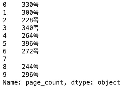 page_count = top10_books.apply(get_page_cnt2, axis=1) # 판다스 시리즈 객체로 저장
