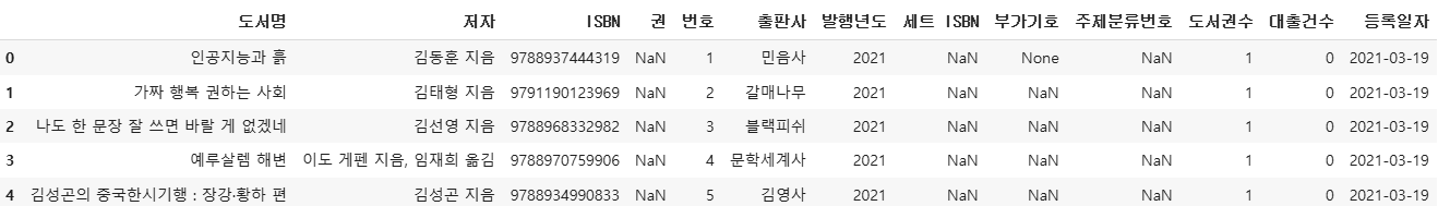count_df = ns_book[['도서명', '저자', 'ISBN', '권', '대출건수']]