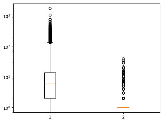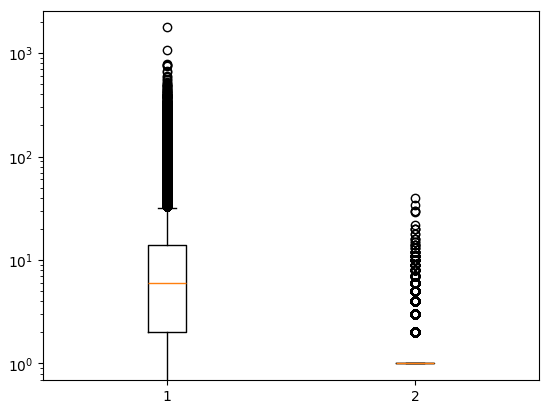 plt.boxplot(ns_book7[['대출건수','도서권수']])