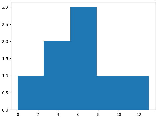 np.histogram_bin_edges([0,3,5,6,7,7,9,13], bins=5)