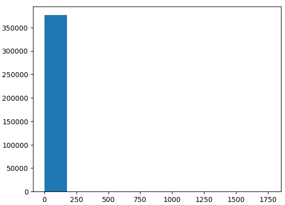 첫 번째 구간의 도수가 너무 커서 다른 구간에는 도수 값이 표시되지 않는 현상 발생! → 구간 조정
