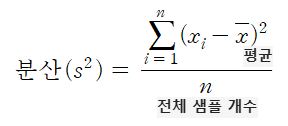 데이터의 각 값에서 평균을 뺀 다음 제곱한 후 평균처럼 샘플 개수로 나누어 구함