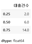 ns_book7['대출건수'].quantile(0.25) #하위 25% 값 출력