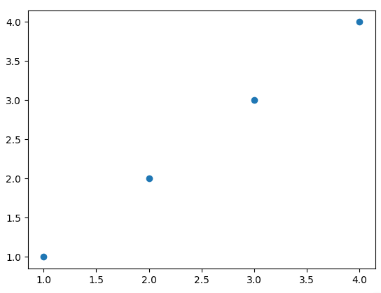 plt.scatter([1,2,3,4], [1,2,3,4])