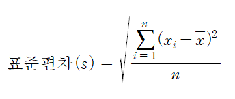 표준편차(s): 분산에 제곱근을 한 것