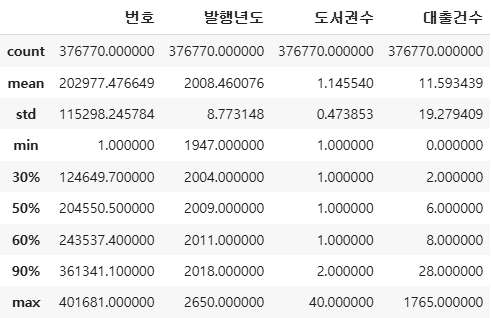 ns_book7.describe(percentiles=[0.3, 0.6, 0.9]) #30%, 60%, 90% 위치한 값 표시