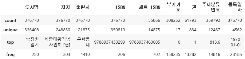 - count: 누락된 값을 제외한 데이터 개수