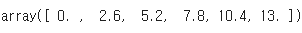 np.histogram_bin_edges([0,3,5,6,7,7,9,13], bins=5)