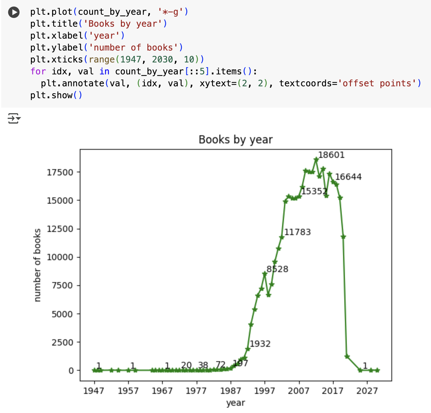 count_by_year = count_by_year[count_by_year.index <= 2030] #2030년도보자 작거나 같은 데이터만