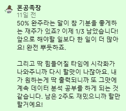 매주 제출 후에 족장님이 달아주시는 코멘트와 우수혼공족 선정은 정말 정말 힘이 되었습니다