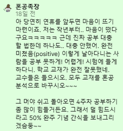 우수혼공족에 대한 갈망과 욕심.. 그리고 매주 달아주시는 코멘트는 너무너무 힘이 났어요